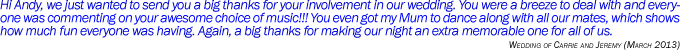 You will see below a current list of songs that Andy performs regularly. The list is quite extensive, and can be sorted alphabetically by Artist, Song Title and Genre. You will notice tick-boxes beside each song. If you wish to send Andy a copy of your song selections for your upcoming booking, please go through the list placing a tick next to each song, enter your name and details, and the list will be electronically generated and sent to Andy.