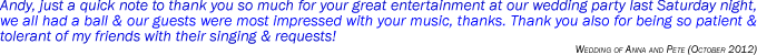 For years, both audiences and fellow performers have marvelled at Andy's amazing ability to remember songs. This skill developed over years of playing in restaurants, bars, nightclubs and resorts. If an audience member requested a song that Andy didn't know, he immediately took the time to learn it. Before long, Andy had amassed a repertoire of literally thousands of songs.